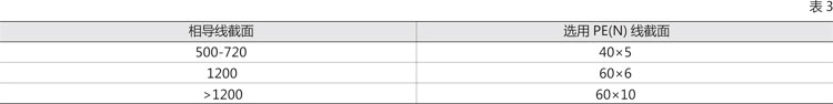 采用硬銅排,貫通水平中性接地線(PEN)或接地+中性線(PE+N)規(guī)格見表3。