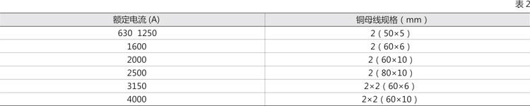 裝置水平母線銅排選用見表2。