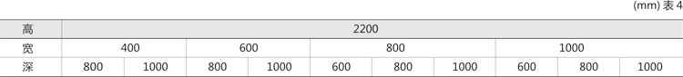 ◎ 裝置柜體的尺寸系列如表4。