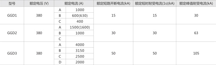 4. GGD3型27個方案和68個規(guī)格。主電路方案是征求廣大的設(shè)計使用部門的意見選編的,增加了發(fā)電廠的需要的方案,額定電流增加至3150A,適合2000kVA及以下的配電變壓器選用。此外,為適應無功補償?shù)男枰O(shè)計了GGJ1、GGJ2電容補償柜、其主電路4個方案,共12個規(guī)格。